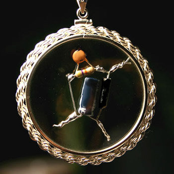 Portal Beta Blocker Amulet, set in Sterling Silver dollar-sized bezel, ready to hang on cord or chain. NOTE: Chain is not included. The Portal Amulet capacitors come in assorted shades of blue.