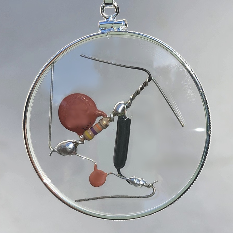 UFO Firewall Beta-Blocker CQR - Crystal Quantum Radio™ Amulet, set in Sterling Silver Dollar-sized bezel.