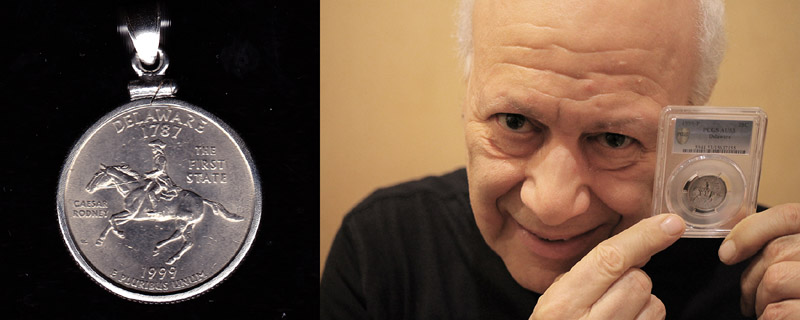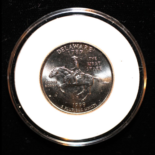 Caesar Rodney rode on horseback for 80 miles one stormy night to arrive just in time to cast the deciding vote and add his signature to the Declaration of Independence. His was the Deciding Vote. If not for his ride, there would be no United States today. Besides the historical significance of this coin, the one I founvd defied the odds by billions to one.