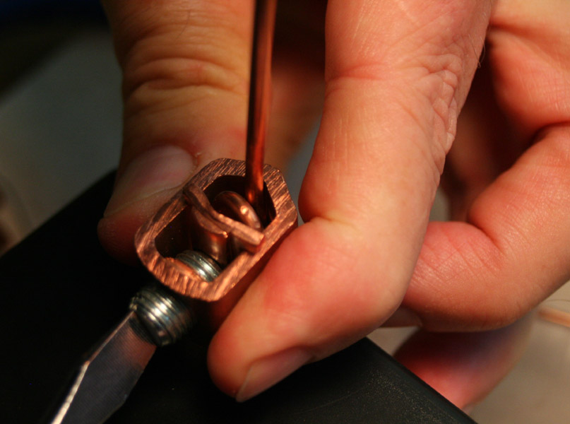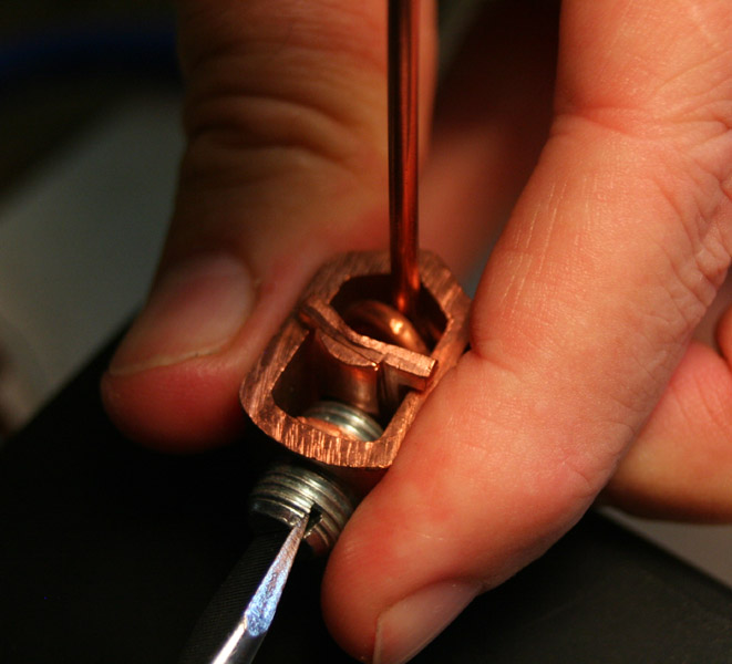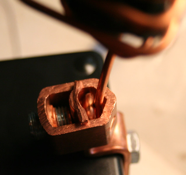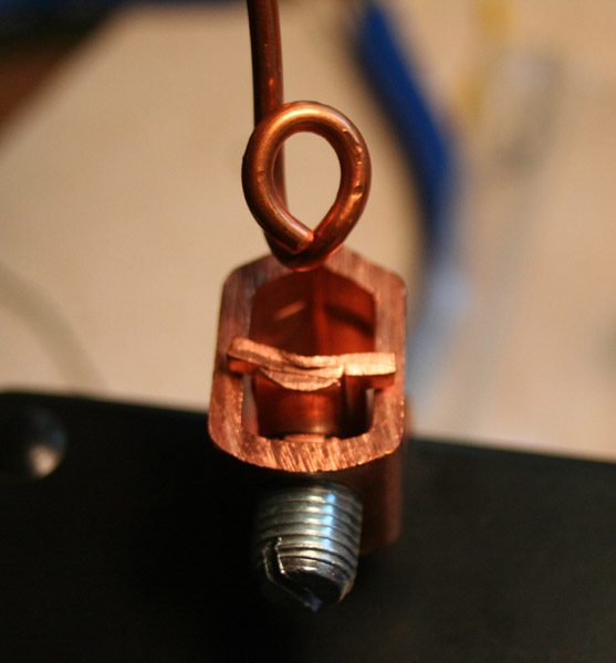 In this view you can see the antenna firm and secure in its base. Notice how the loop is toward the center of the device and it is firm against the upright wire.