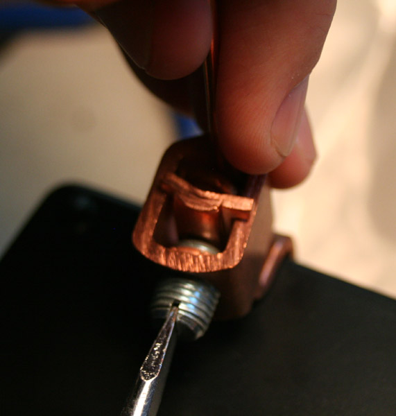 As the screw pushes the center plate against the base of the antenna, you will need to adjust the holder so that the connection is solid and straight.