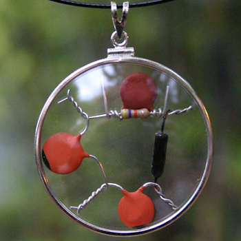 Protector Spirit Radio Beta Blocker Amulet, set in Sterling Silver Dollar-sized bezel, ready to hang on cord or chain. Also available in 12k gold fill bezel.