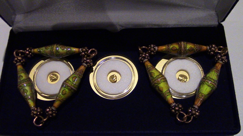 As drops with an ear wire, they might have been worn, but you’ll never see an image of an ancient wearing an Atlantean Machine Triad. The shape was popular, but the size and mass of an operating Triad would make it impractical for ear wear, although it was often worn as an amulet or carried on a string over a sash or belt, but most often, it could be found in a person’s pouch, where all valuables were stashed when on the open road or in a public street, where there were no police to protect you against violence.