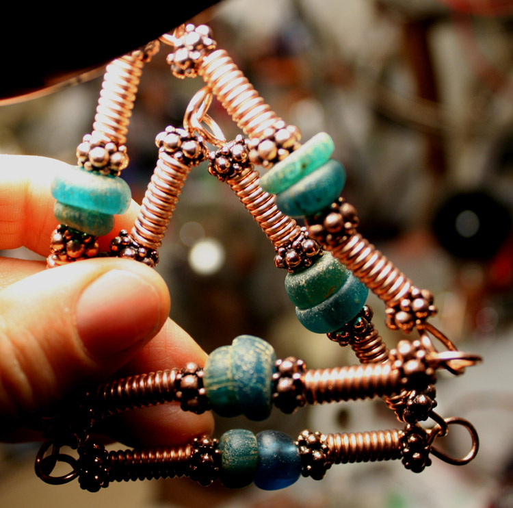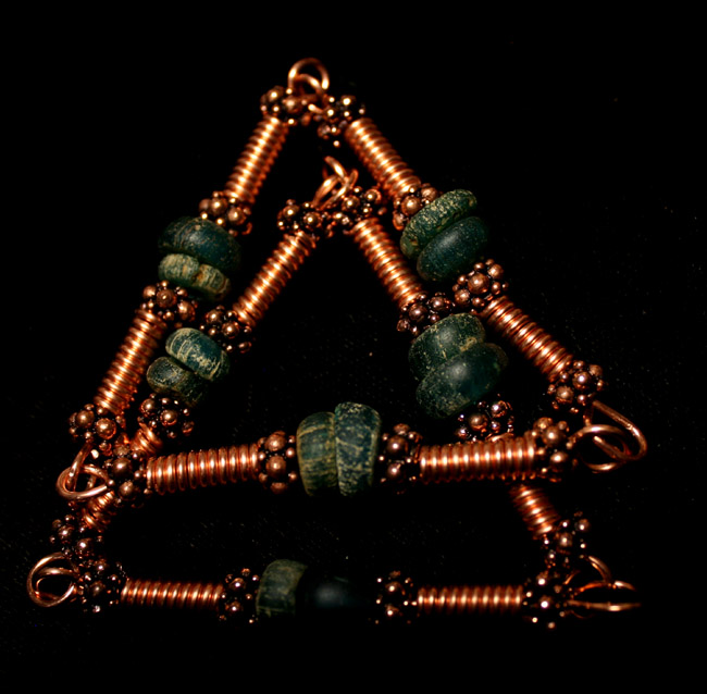 The Amazing Tesla Triad, made with genuine Steve Sax EMO Beads & modern copper findings & wire, made in the traditional PALEO TECHNOLOGY.