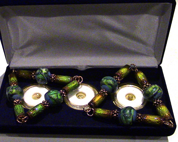Of course, the ancients did not have color-changing EMO beads, and in fact, most of my modern copies of ancient Triads don't employ any item that could not have been made in ancient times, one example of which is a Triad that uses hand-wrapped (ouch, painful but worth doing, if historical authenticity is what you want).